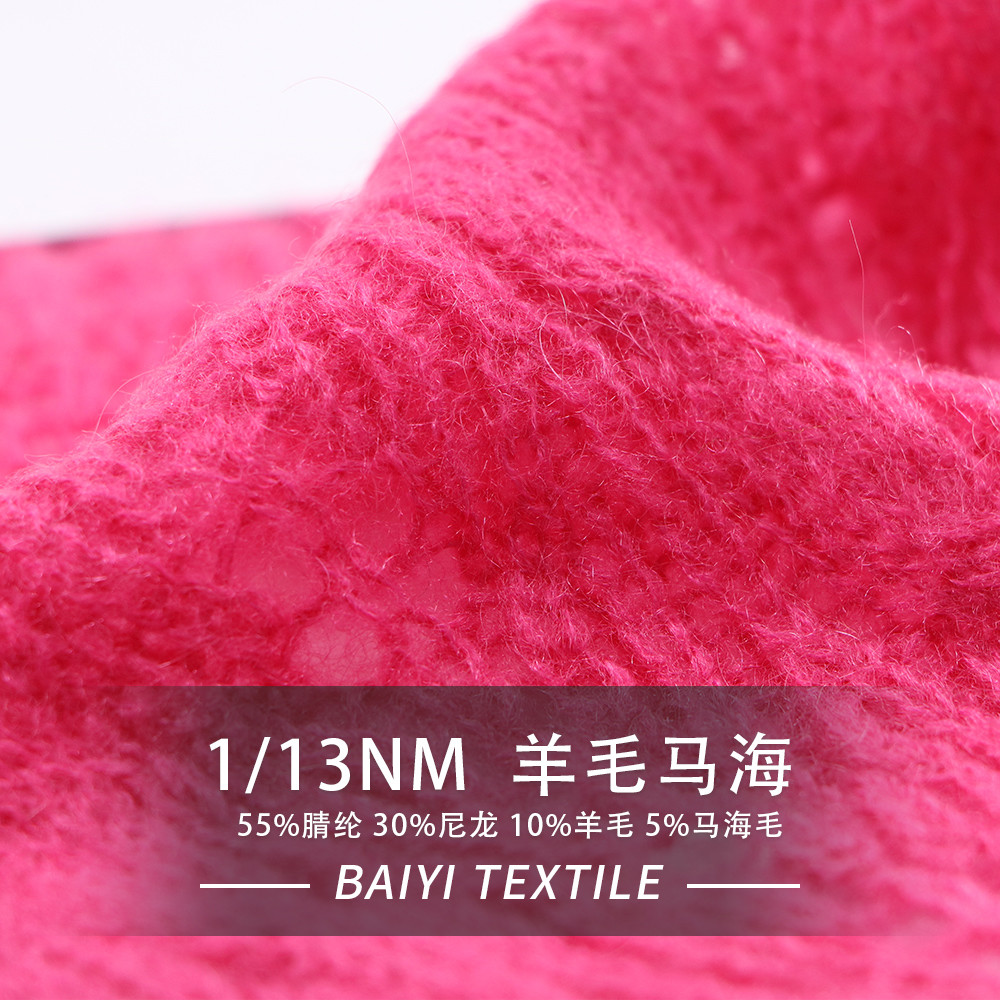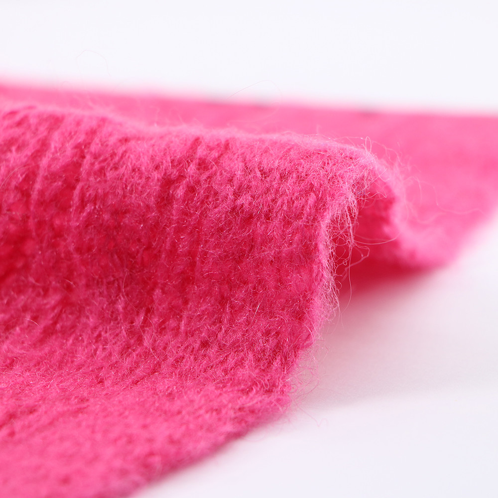 | Fitur: | Kehangatan, kelembutan, anti pilling | Komposisi: | 6% Mohair 25% Nilon 26% Poli daur ulang 5% Spandeks |